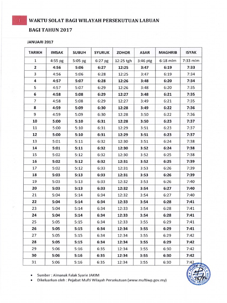 Almanak Falak Syarie JAKIM Dikeluarkan oleh. Mesyuarat JK Kecemerlangan UPSR Bil 1 2017 11 Jan 2017 - Mesy JK Kecemerlangan UPSR Bil 1 2017. JADUAL WAKTU SOLAT WILAYAH PERSEKUTUAN LABUAN BAGI TAHUN 2021 GARIS PANDUAN CETAKAN JADUAL WAKTU SOLAT.