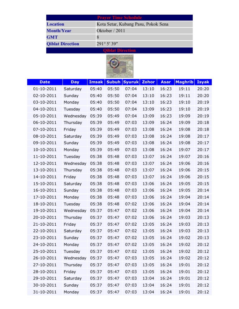 Waktu Solat 2010 Utk Daerah Kota Setar Kubang Pasu Pdf